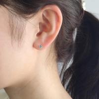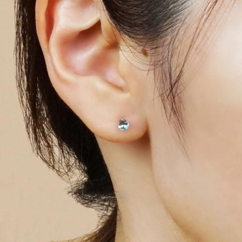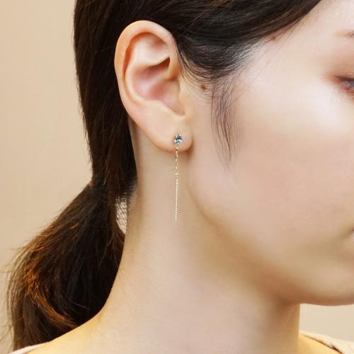 つるんとしたカットがみずみずしいブルートパーズのセカンドピアス。
