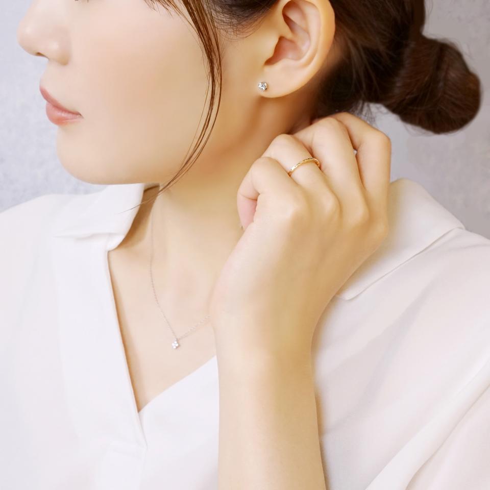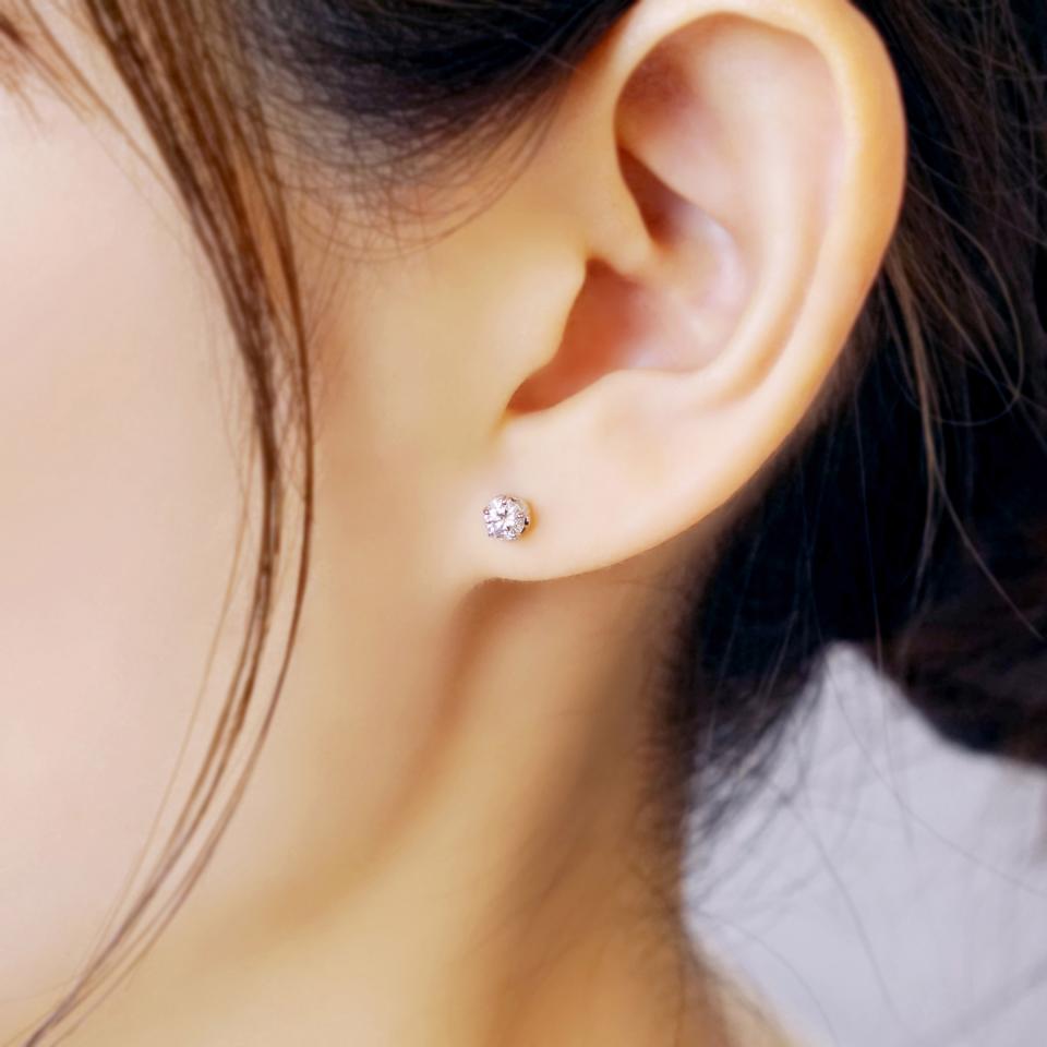 5本爪でしっかりと留め片耳0.2ctという存在感のある大きさは一生モノのアイテムです。