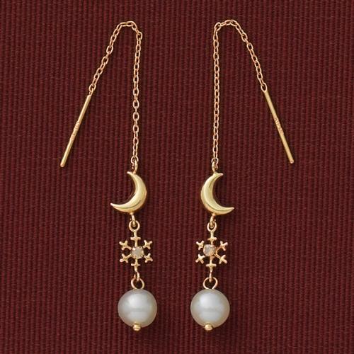 K10イエローゴールド、タンスイパール、キュービックジルコニア( ポストとキャッチ部分のみK18イエローゴールド)