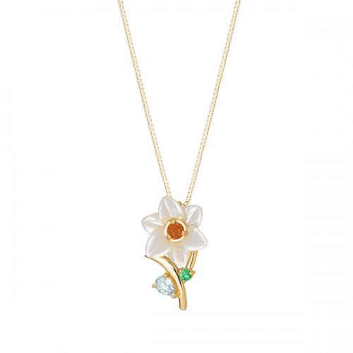 K10イエローゴールド、ホワイトシェル、オレンジガーネット、エメラルド、アクアマリン