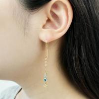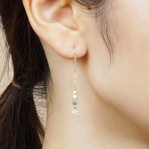 K10イエローゴールド、 ロンドンブルートパーズ、キュービックジルコニア( クリア・ライトブルー)( 耳に入るチェーン、 ポスト部分のみK18イエローゴールド)
