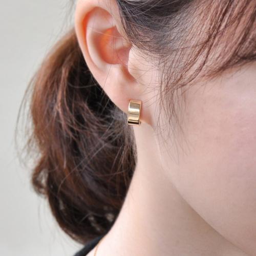 幅広いフラットなゴールド面が美しく輝く、存在感のあるフープイヤリング。
