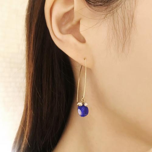 大きなワイヤーに大きな天然石が揺れるピアスです。