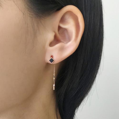 ガーネットとオニキスのカラーリングが魅力的なバックキャッチピアスです。