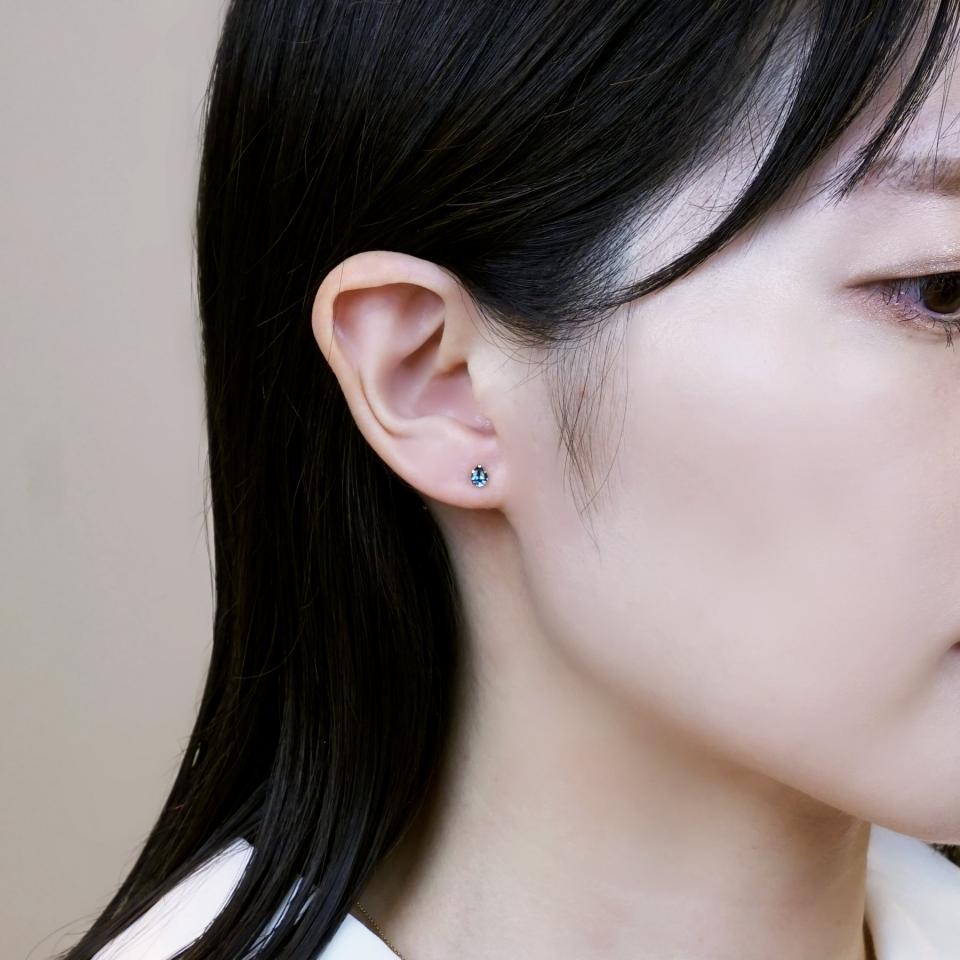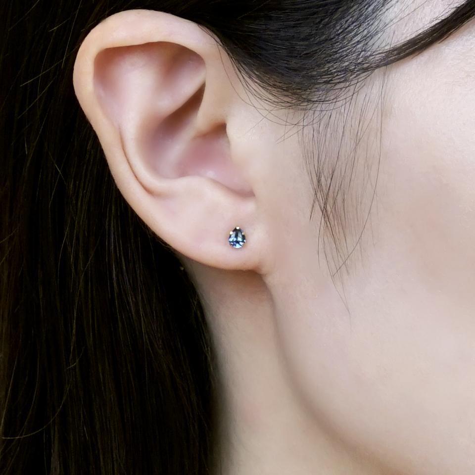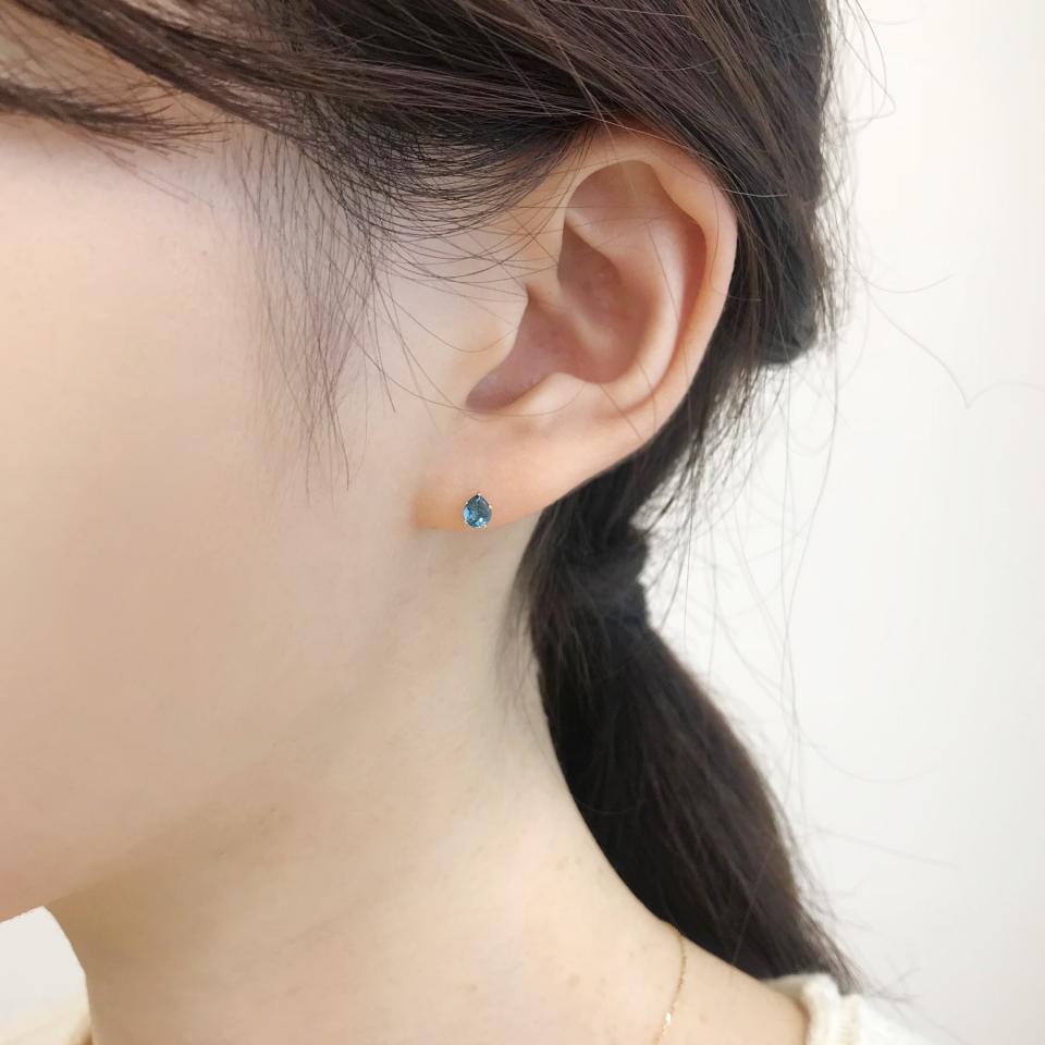 つるんとしたカットがみずみずしい深い色味のロンドンブルートパーズ(11月の誕生石)のセカンドピアス。