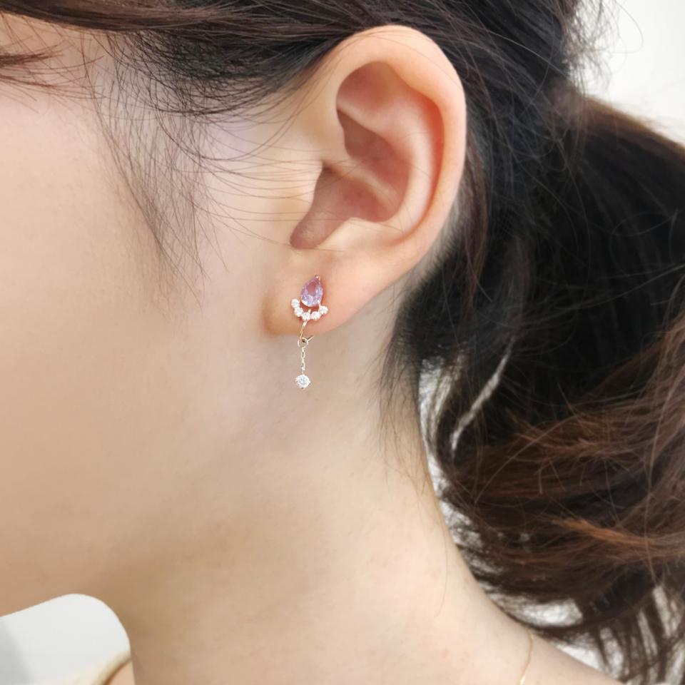 明るい紫色が綺麗なライトアメジストを使用した、雫型イヤリングです。