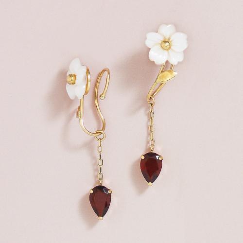 K10イエローゴールド、ホワイトシェル、ガーネット