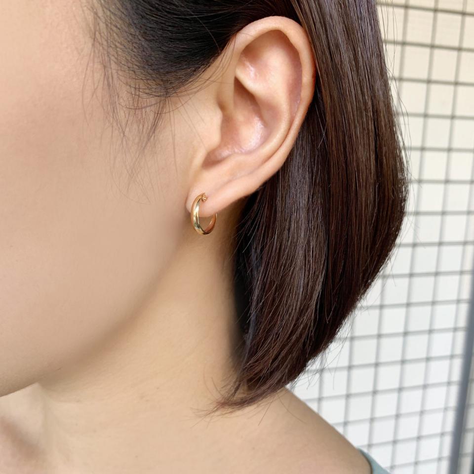 細身でスッキリとした印象のツキコウフォルムのフープピアス。