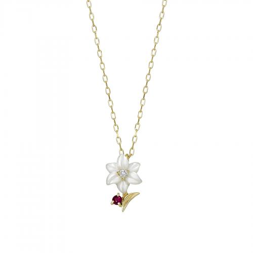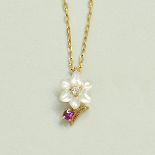 K10イエローゴールド、ホワイトシェル、ルビー、ダイヤモンド0.01ct