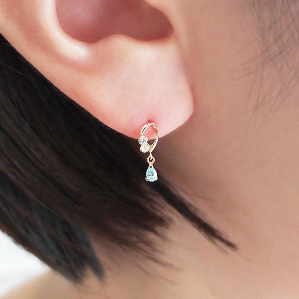 K10イエローゴールド、キュービックジルコニア(クリア、ライトブルー)