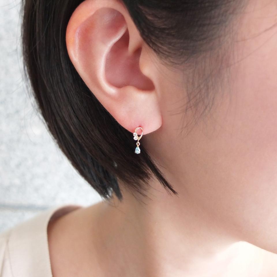 キュービックジルコニアが動くたびにキラキラと輝きます。爽やかな印象で清楚な仕上がりです。季節問わずにお楽しみいただけます。