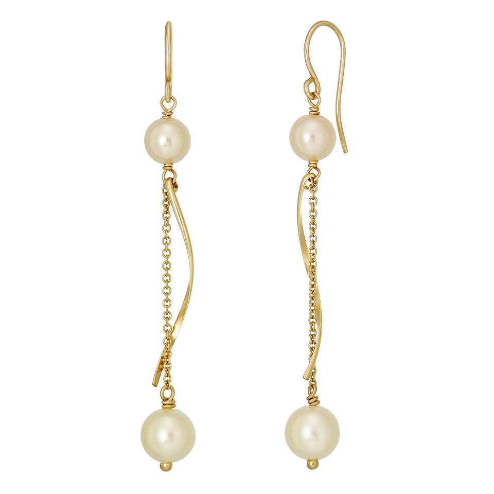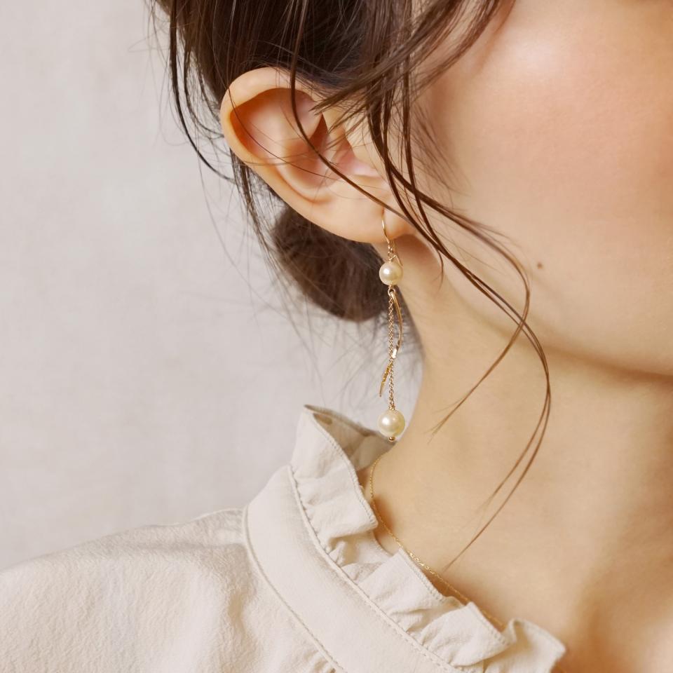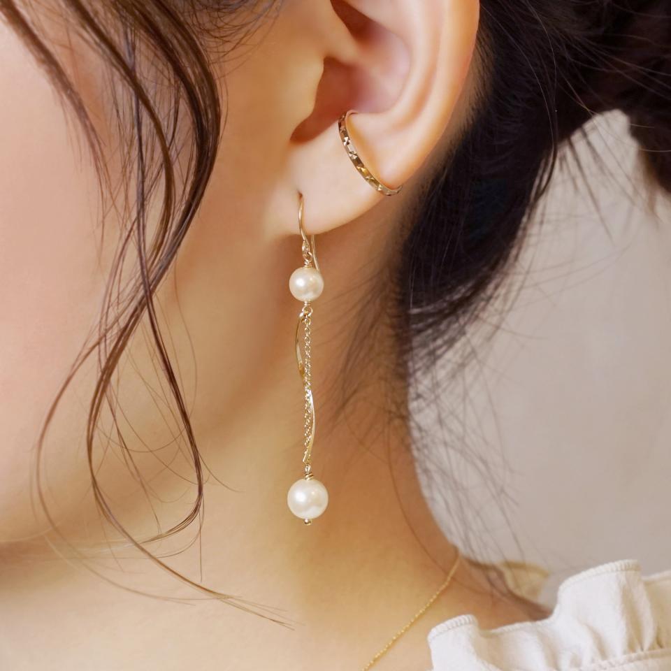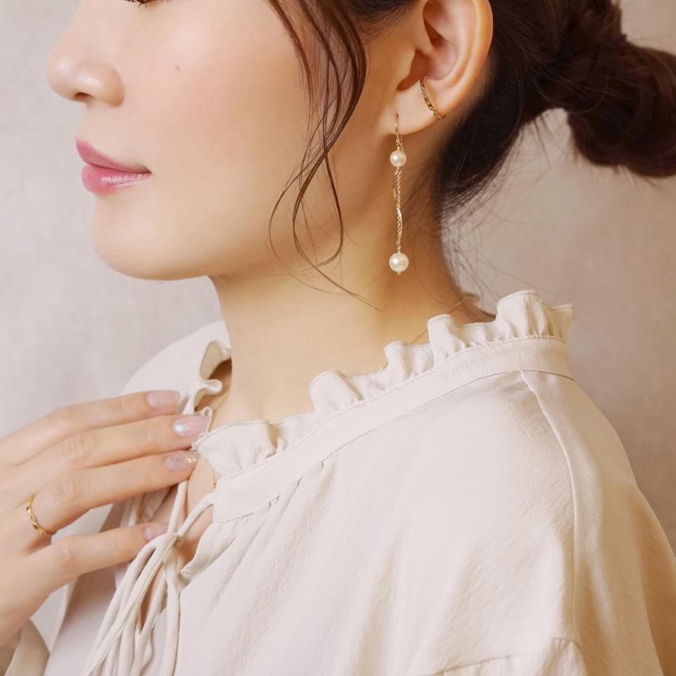 揺れ感のあるパールにひねりで上品さをプラスしたワイヤーピアス。