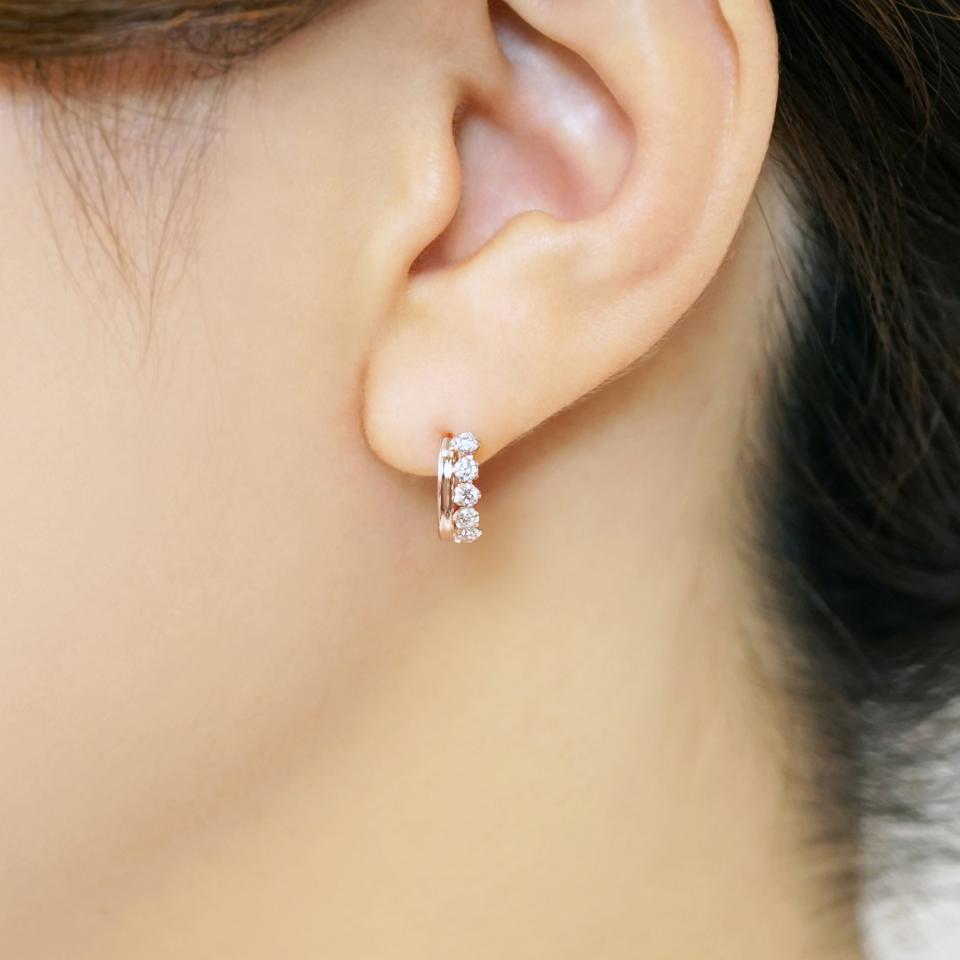 肌なじみの良いピンクゴールドなので華美になりすぎず、耳元で品よく輝きます。