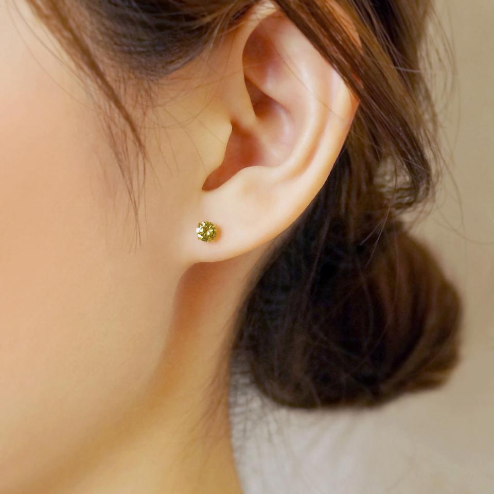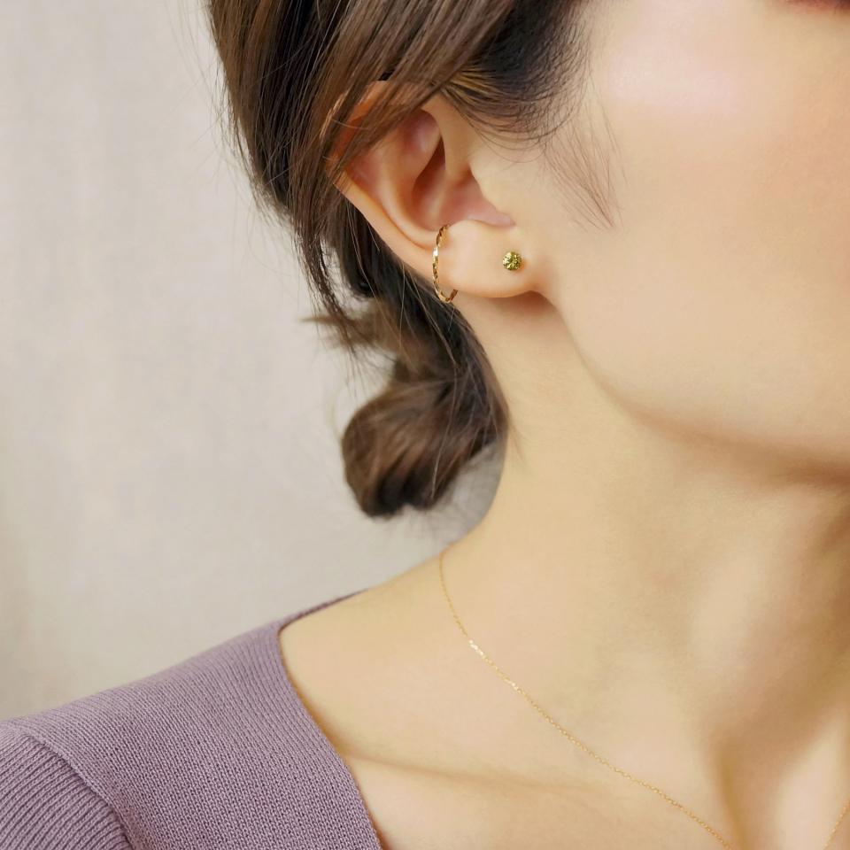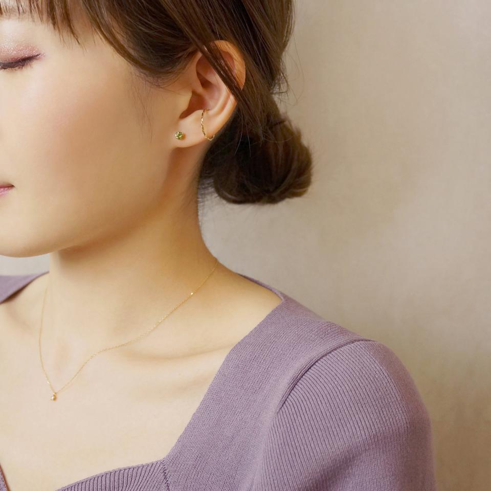 4ミリサイズのオリーブカラーのキュービックジルコニアが目を惹くセカンドピアス。