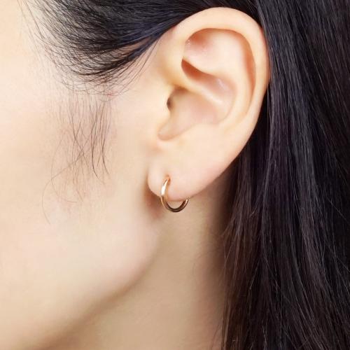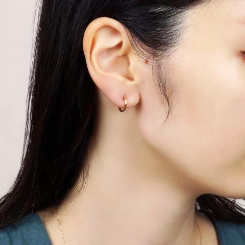 合わせやすいシンプルなフープタイプのイヤリング。シリコンのキャッチが付いているので耳が痛くなりにくいです。