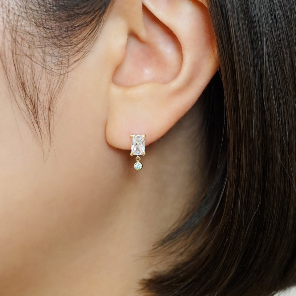 バゲットカットのキュービックジルコニアが目を惹くスイングピアス。