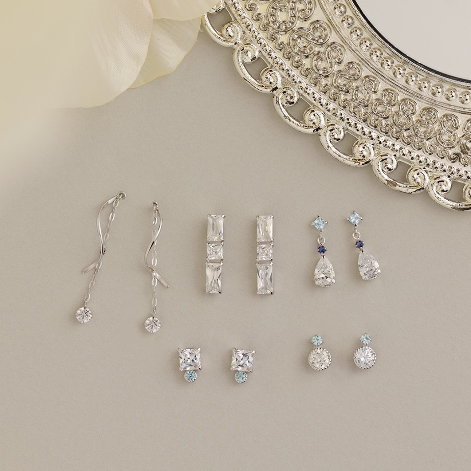 K10ホワイトゴールド、キュービックジルコニア(ライトブルー、サファイヤ、クリア)
