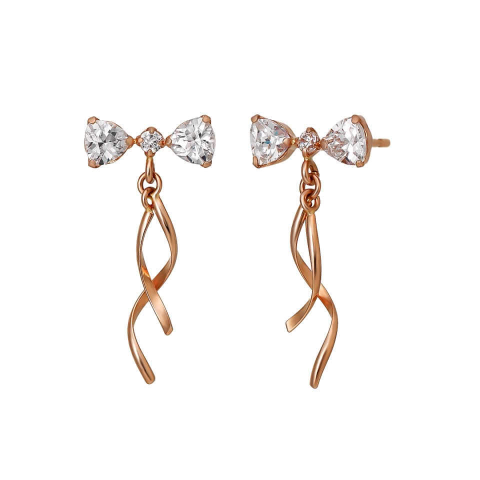 リボンのシルエットで揺れ煌めくスイングピアス。