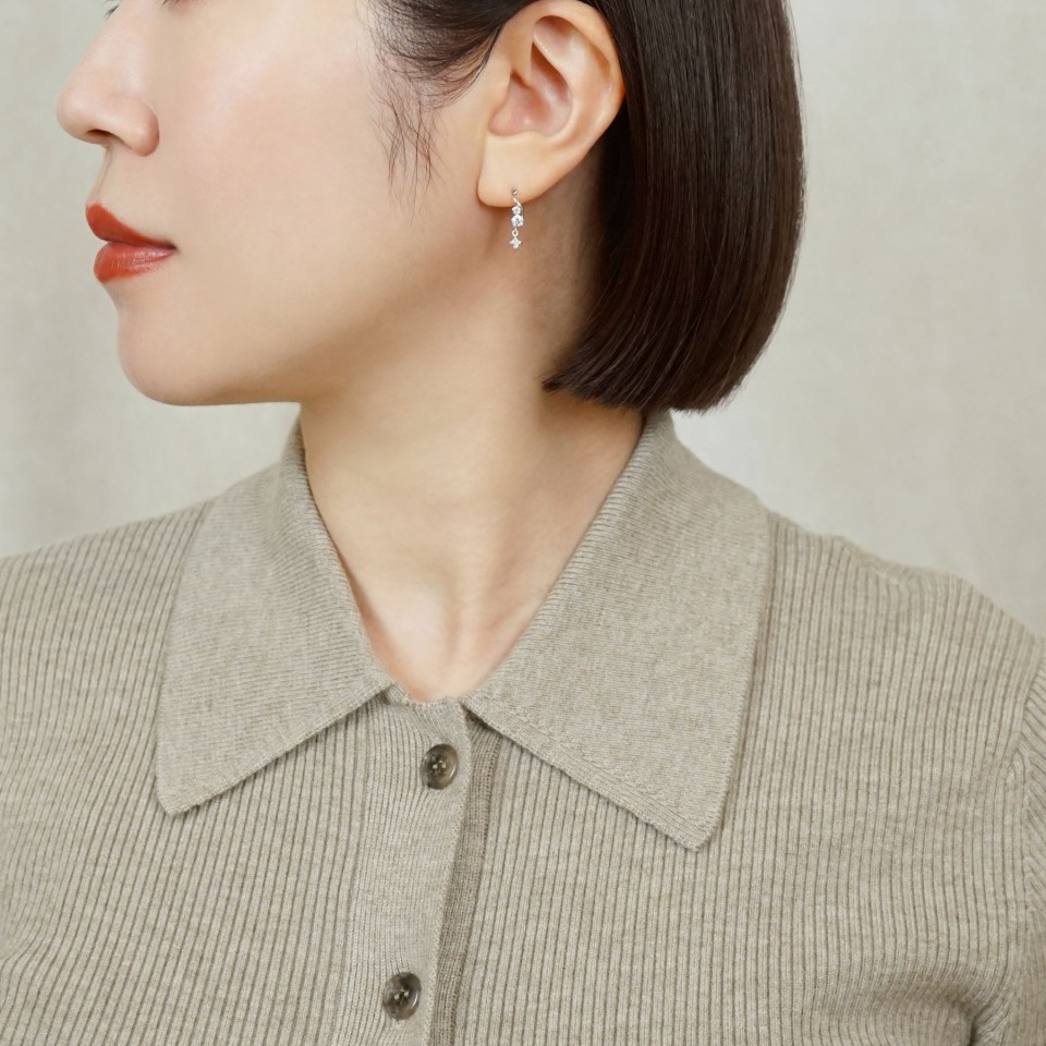 又、さり気なく揺れるスクエアの煌めきでフェミニンになりすぎず、大人らしさをプラス。どんなコーディネートにも合わせやすく、様々なシチュエーションでお楽しみいただけます。