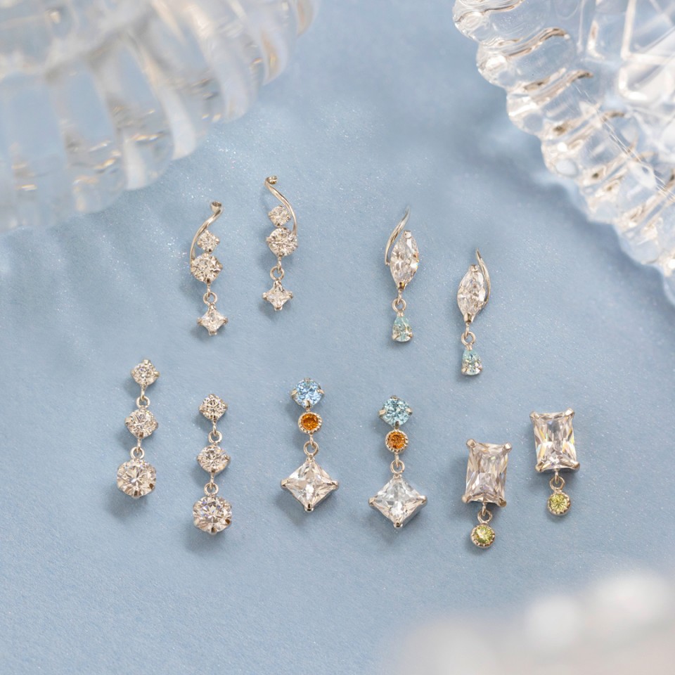 クールな印象のホワイトゴールドベースに、クリアカラーのキュービックジルコニアが輝きます。