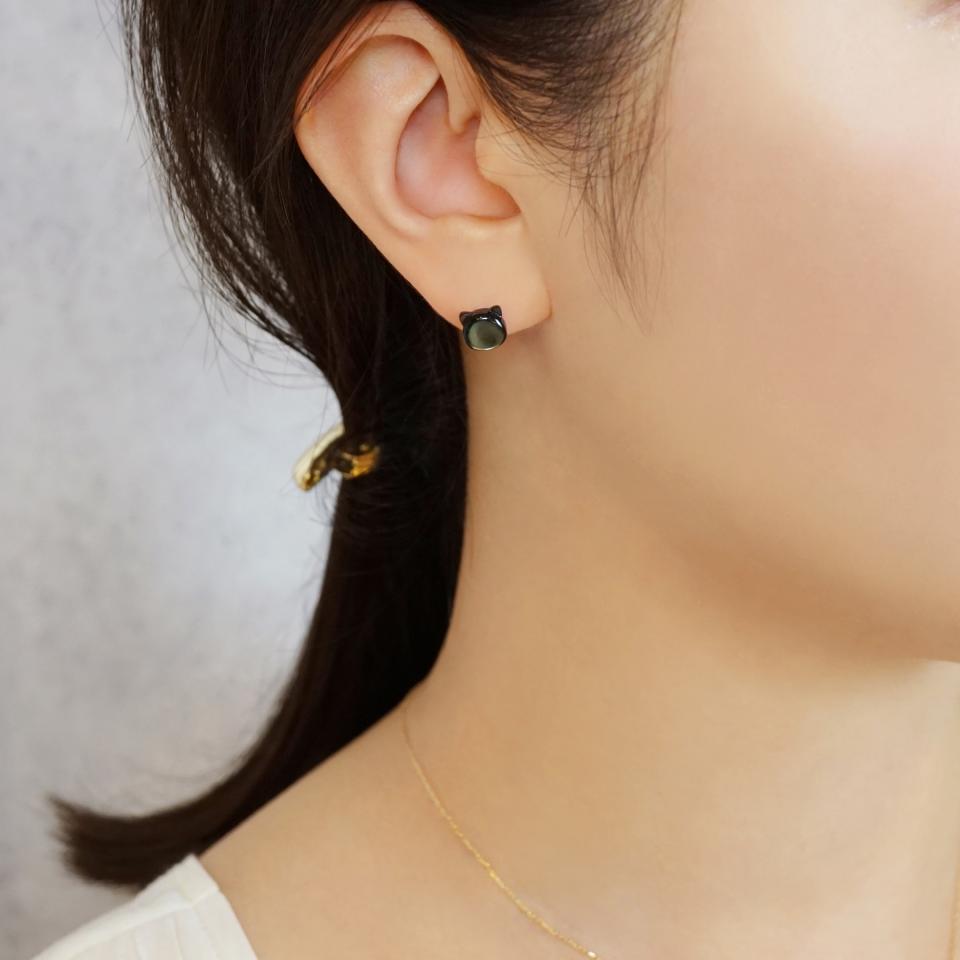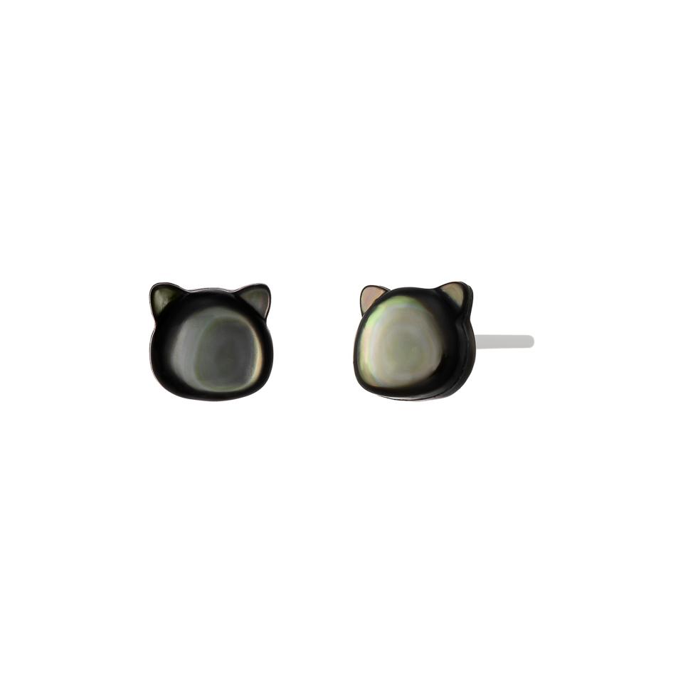 ぷっくりとした猫のカーヴィングが施された1粒ピアス。合わせやすいモノトーンカラーで様々なシーンでお使いいただけます。天然シェルの艶感をお楽しみいただけます。