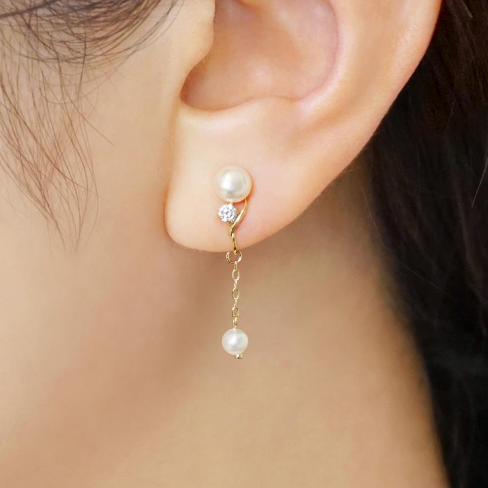 K18・K10 オニキスドロップライン ワンポイントピアス( YG)