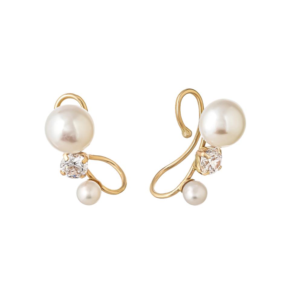 リズミカルにタンスイパールとキュービックジルコニアをセッティングしたイヤリング。パールの優しい光沢感とキュービックジルコニアの輝きをシンプルに楽しむことができ、様々なコーディネートに合わせやすいアイテムです。