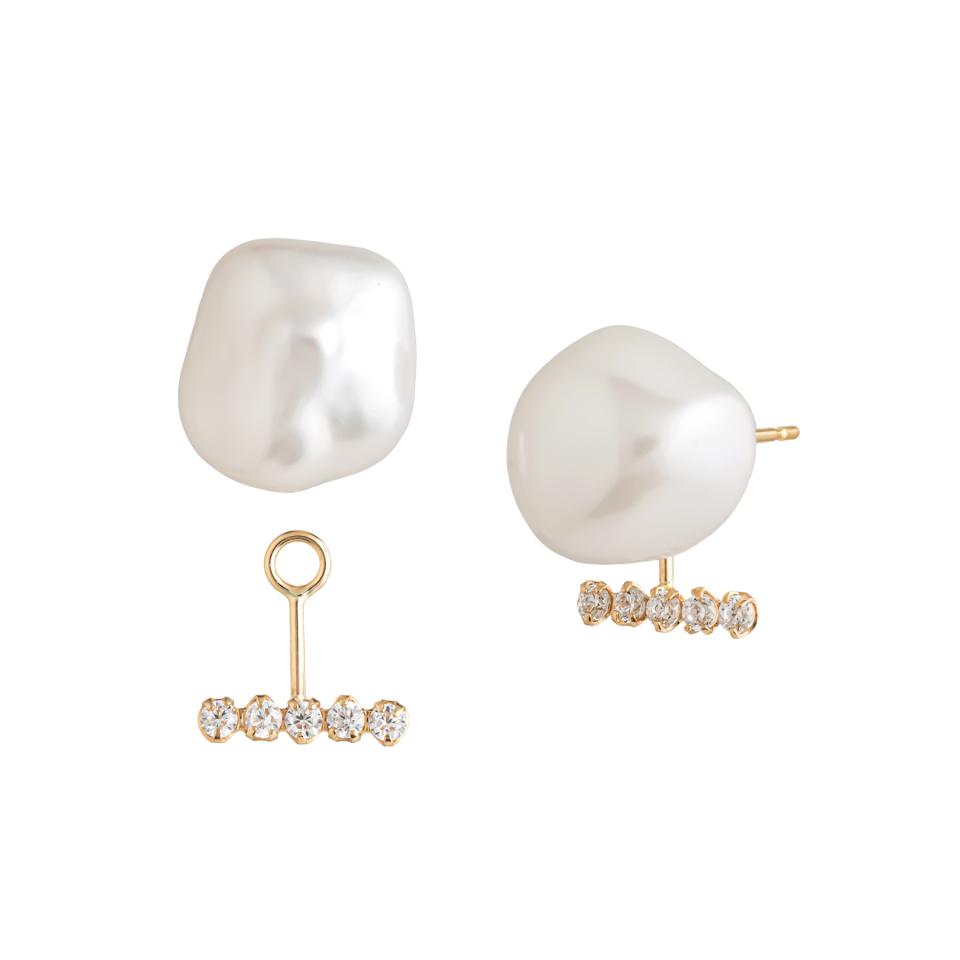 存在感のあるバロックパールの光沢と、キュービックジルコニアの輝きが上品で美しいデザインです。