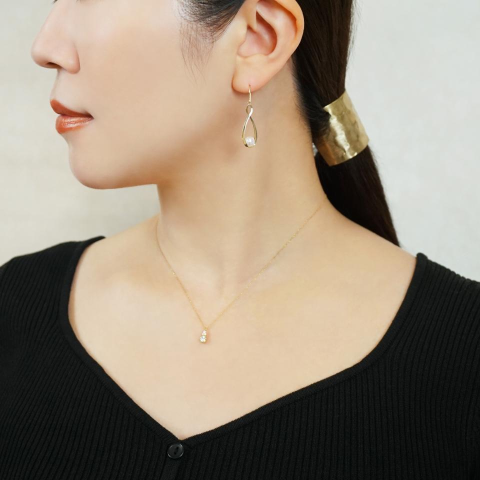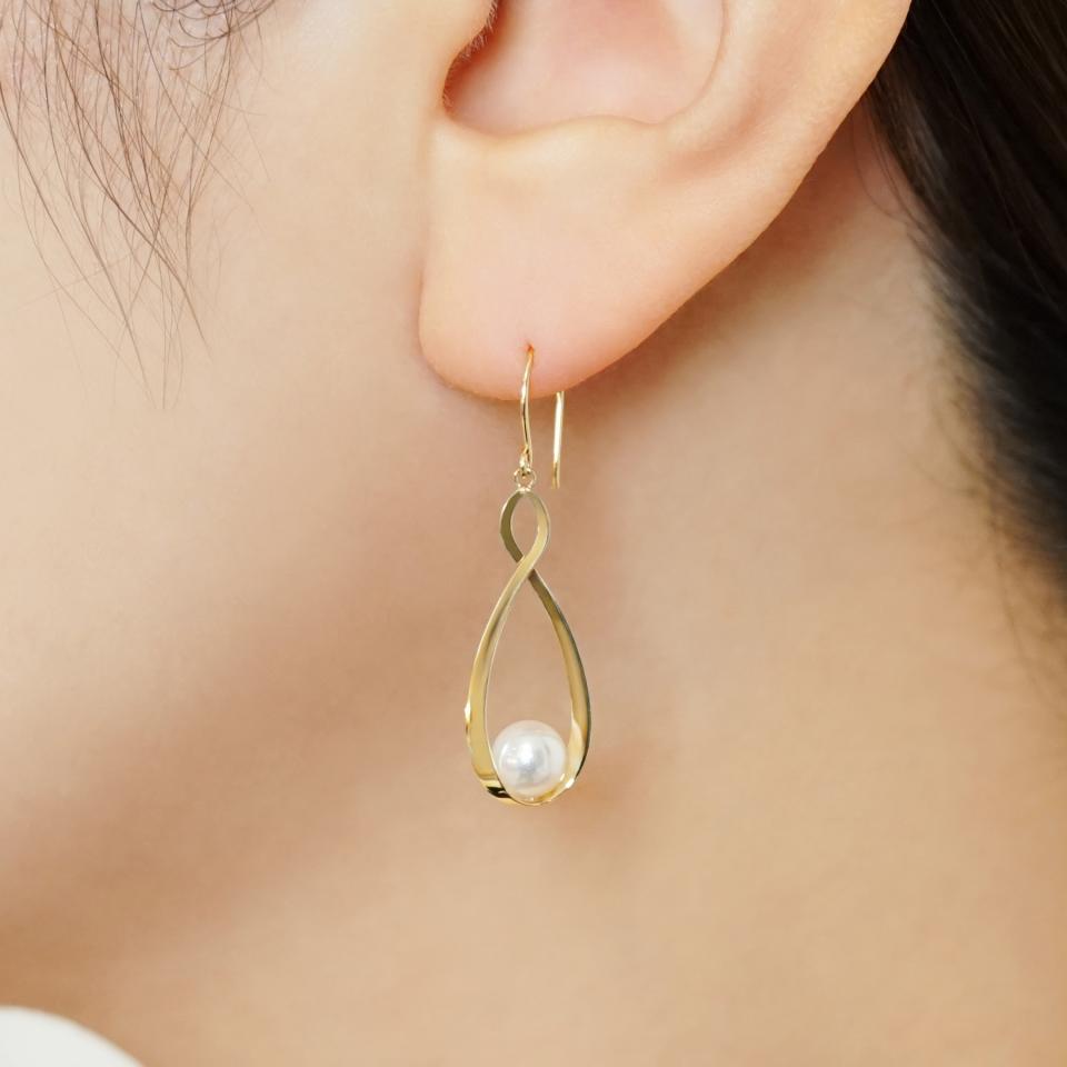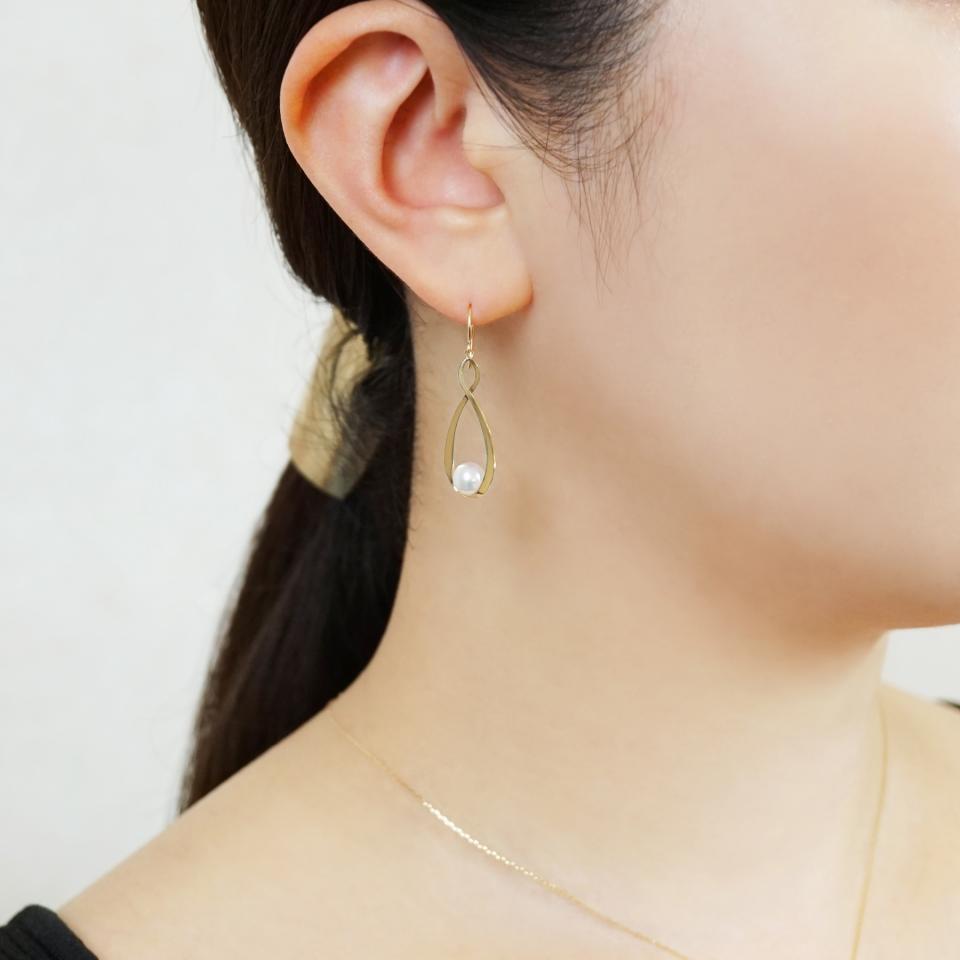 洗練されたフォルムにアコヤパールが上品に輝くピアス。