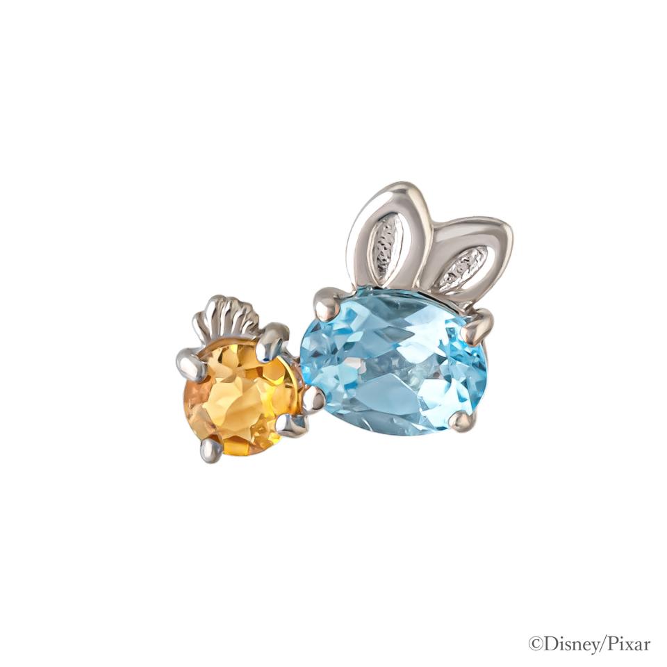 一見可愛いぬいぐるみながら実は毒舌コンビの2人をカラーストーンで表現したソロピアスです。離れることのできない2人だからこそ、あえて左右ではなく、2石のストーンを寄り添わせた1つのピアスにデザインしました。トイ・ストーリーの名コンビをさりげなくおしゃれに身に着けることのできるアイテムです。