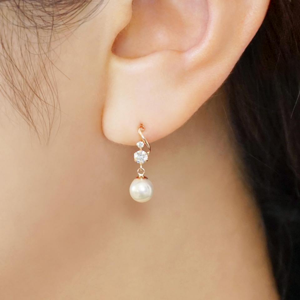 [ フワットイヤリングス]スイングパールチャームイヤリング