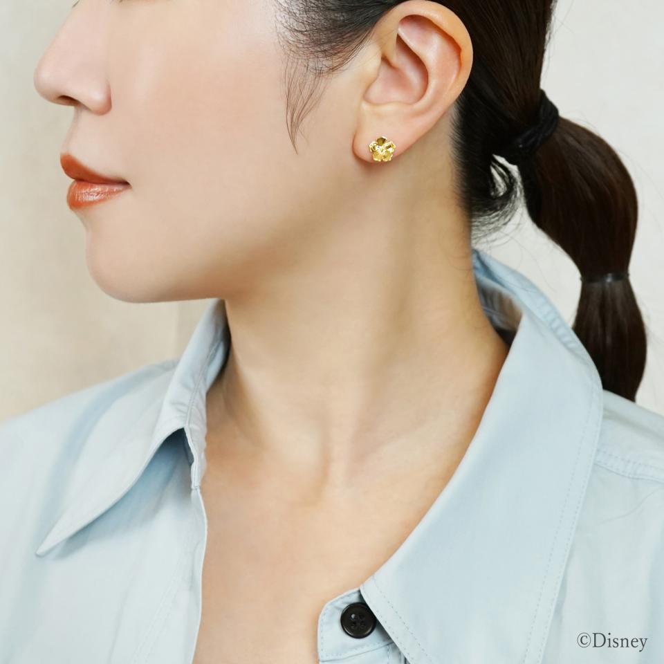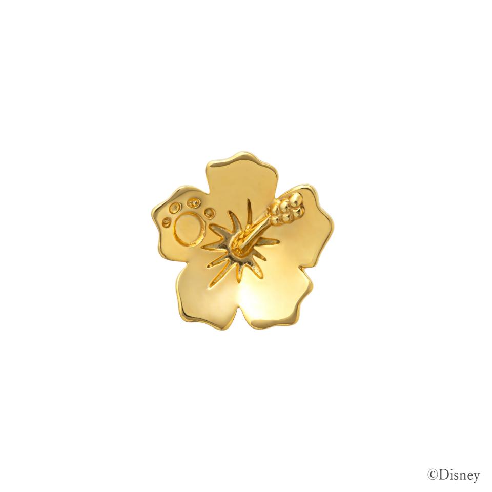 ふんわりとしたボリュームで凛々しく上品に咲くハイビスカスの姿を立体的に作り上げ、花びらの一枚にはスティッチの足跡を刻印しました。いたずらなスティッチの姿をさり気なく感じられるピアスです。