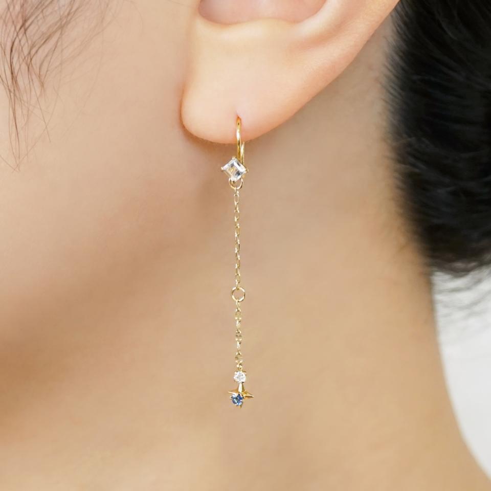 ゆるやかに揺れるロングチャームが星の軌跡を描き、耳元に幻想的なリズムを添えるチャームに仕上げました。さりげないアシンメトリーのデザインで大人の遊び心を加え、おしゃれと個性をお楽しみいただけます。