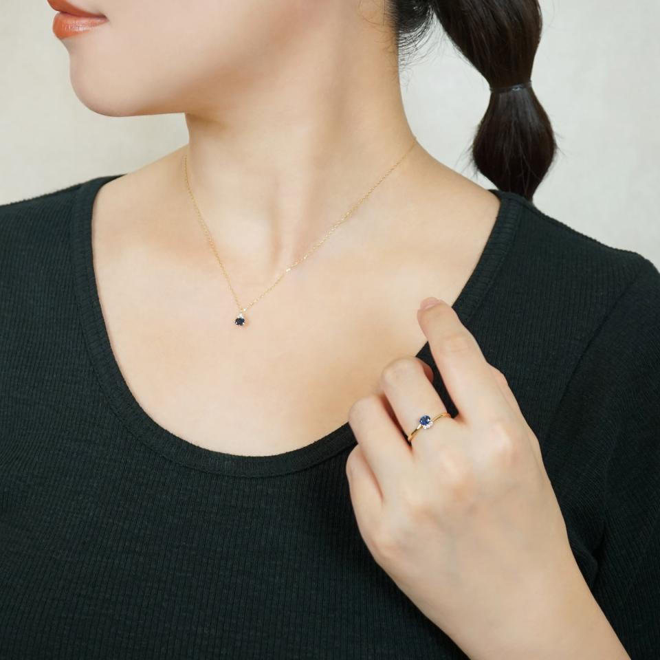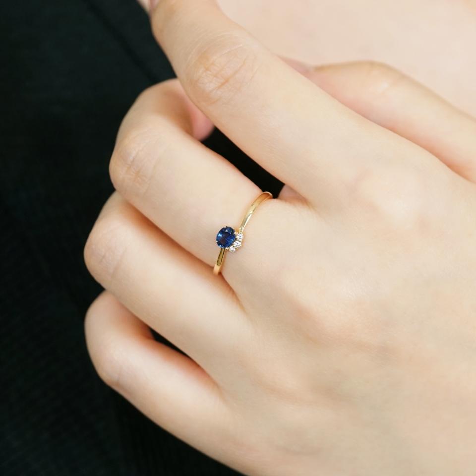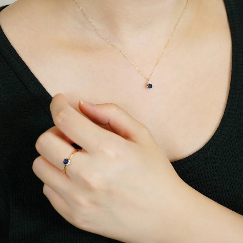 K10イエローゴールド、サファイヤ、ダイヤモンド(0.02ct)