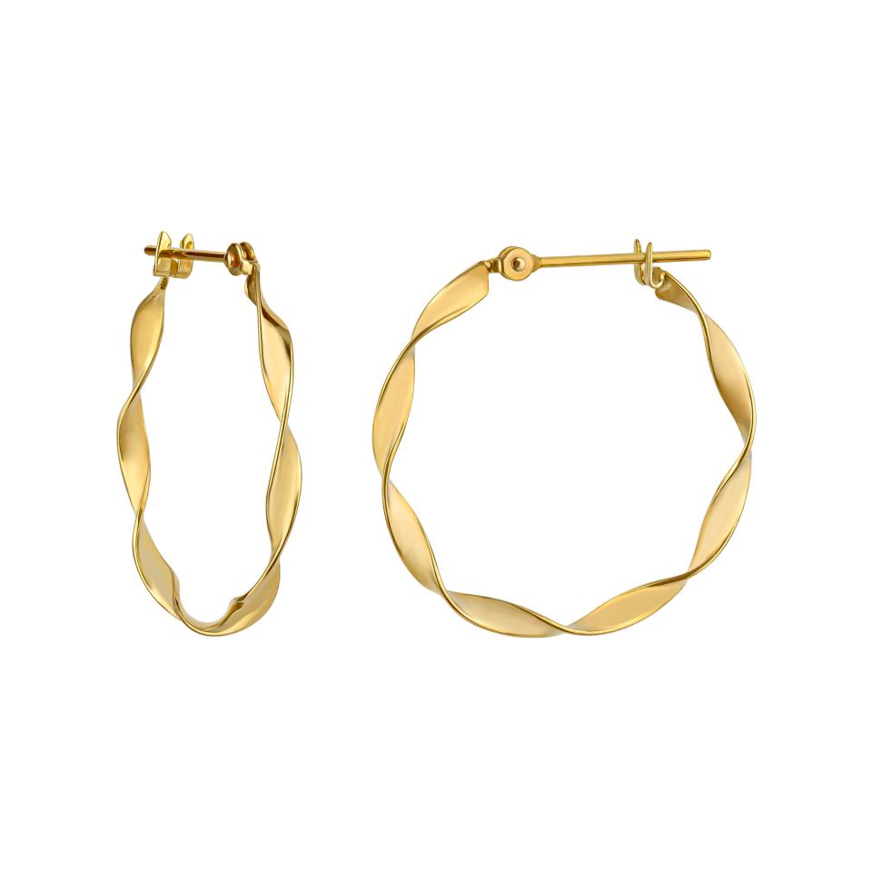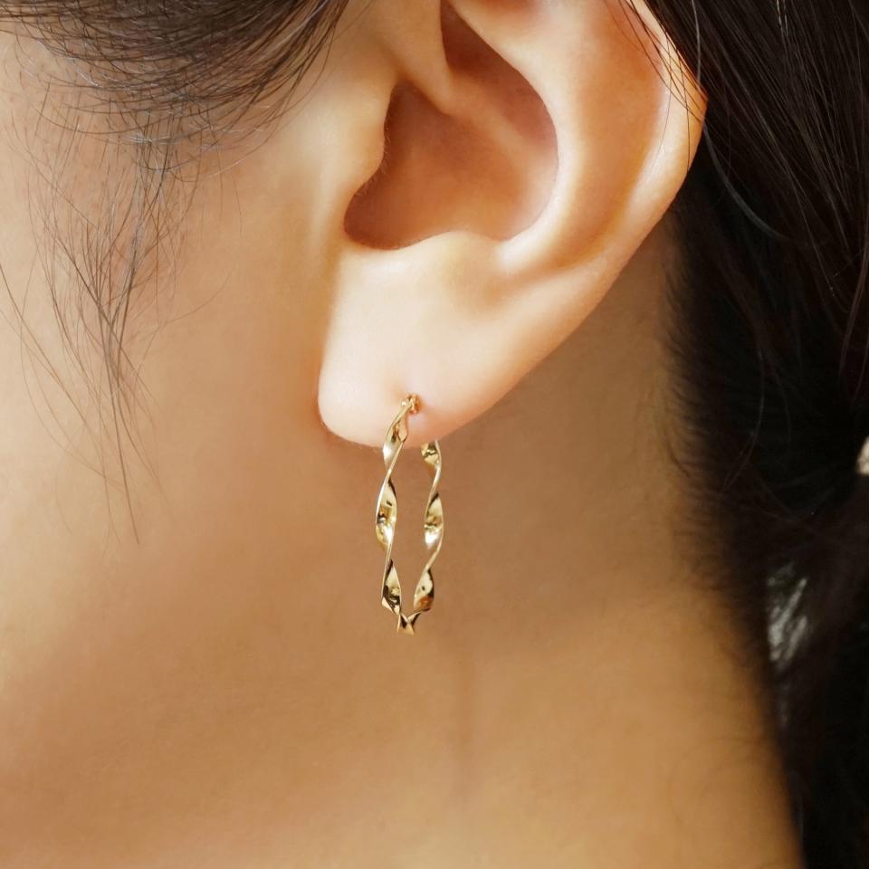 ツイストしたゴールド地金が艶やかに輝くフープピアス。