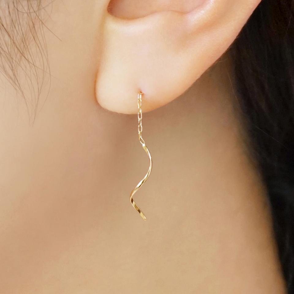 【Lively】K10 ヒネリラインチェーン スイングピアス( YG)
