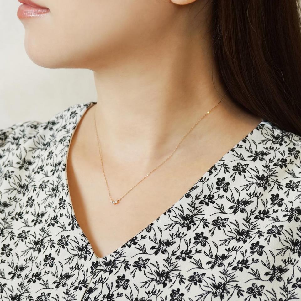 デコルテに沿う緩やかなアーチがエレガントで上品な仕上がり。自分へのご褒美にも、大切な人への贈り物にも素敵なネックレスです。