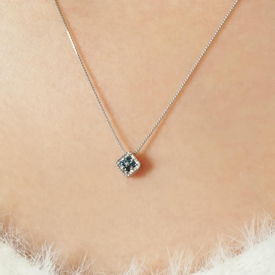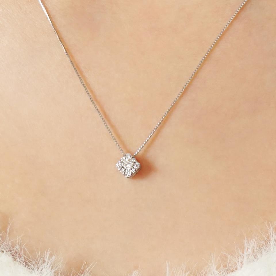 上質なダイヤモンドをスクエアーシルエットにデザインしたネックレス。