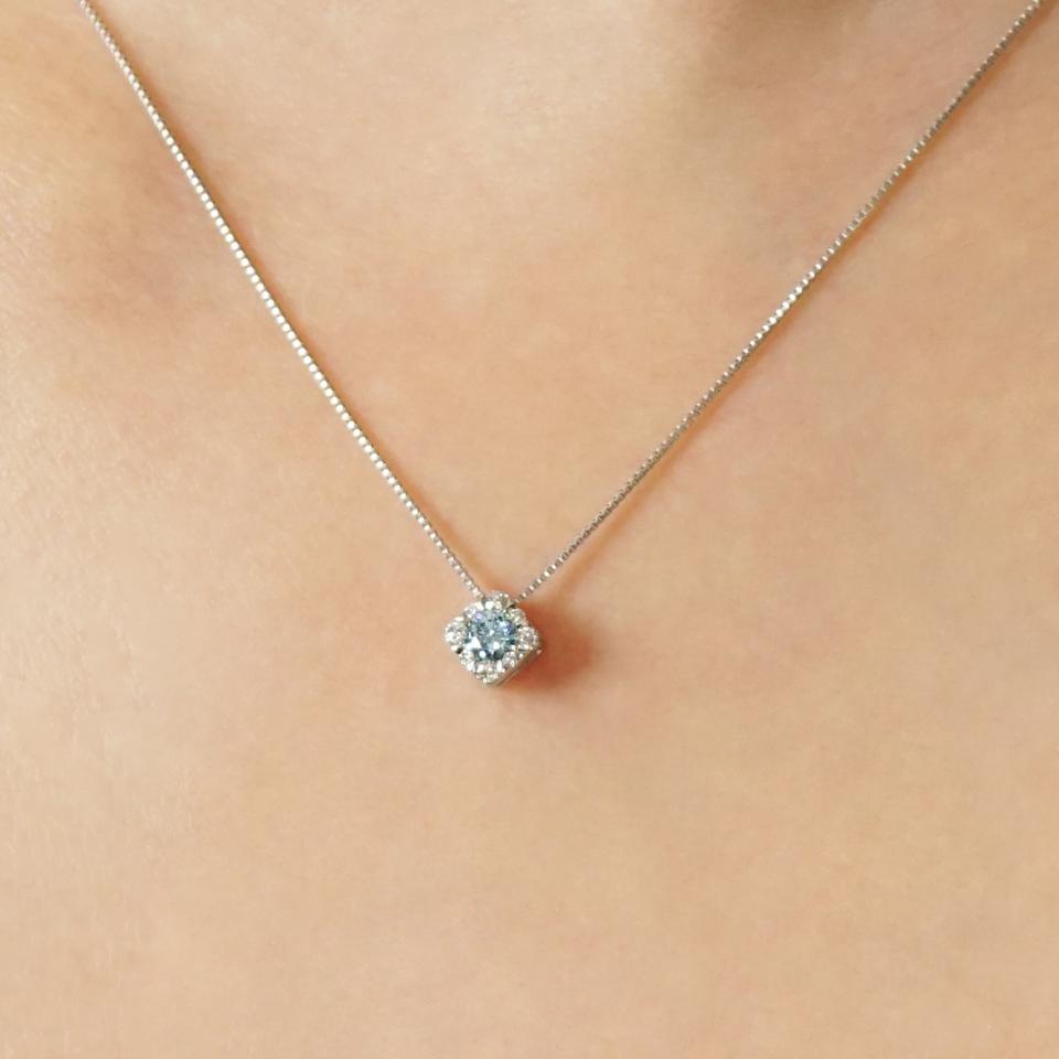 センター石は0.1ctのアイスブルーダイヤモンドを使用しました。