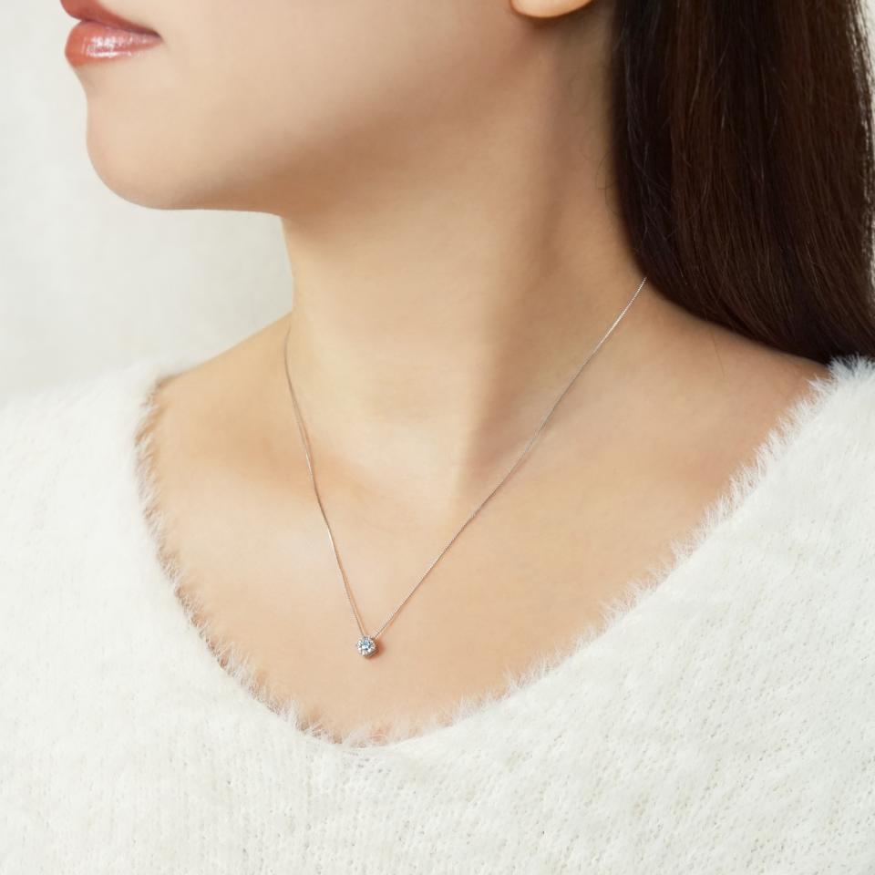 上質なダイヤモンドをスクエアーシルエットにデザインしたネックレス。