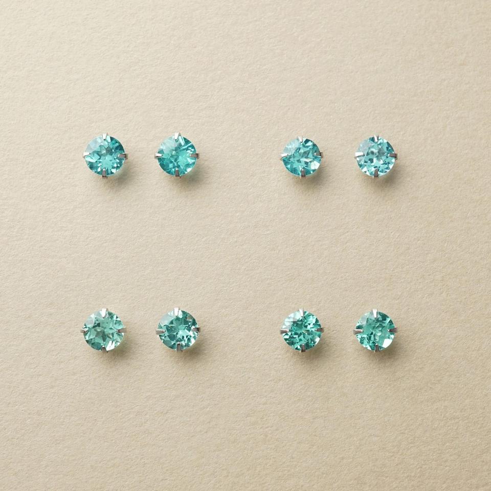 セカンドピアスでは珍しい4.5ミリサイズをセッティングしました。発色が良く輝きもきれいで目を惹きます。プラチナと組み合わせることで綺麗なブルーグリーンの色味をだしています。シンプルながら存在感のある仕上がりで、日常使いにも特別なシーンにもおすすめです。
