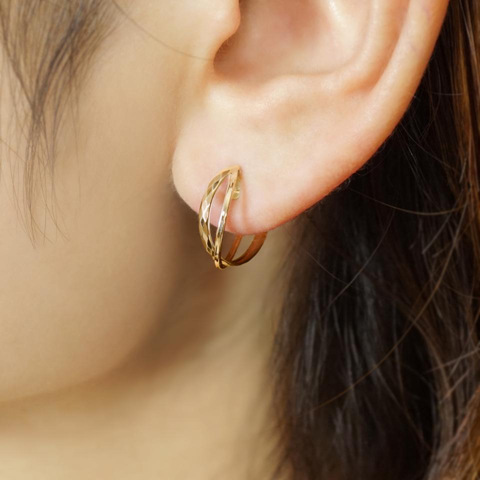 太さの異なる2本のラインを組み合わせたエレガントなフープイヤリング。
