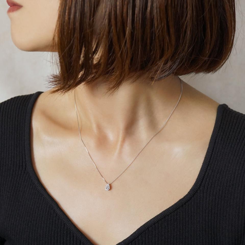 上質なダイヤモンドを優しいドロップ形にデザインしたネックレス。