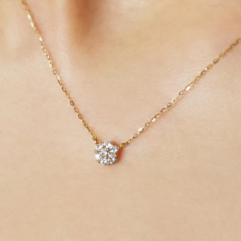 7石のダイヤモンドが模る可憐な小花のネックレス。