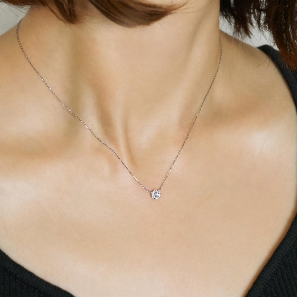 爪の配置にこだわってセッティングした上質なダイヤモンドが、胸元でみずみずしく煌めきます。