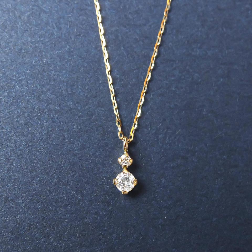 2種類の異なる輝きが胸元を彩るシンプルなネックレスは、