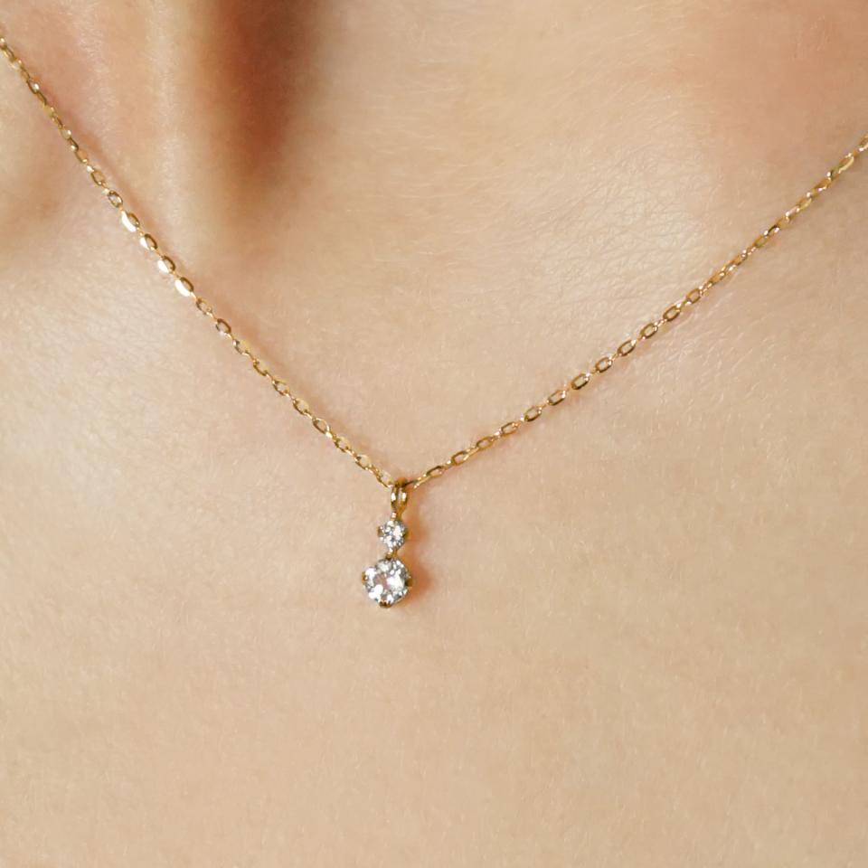 ダイヤモンドとホワイトトパーズが揺れてきらめくネックレス。