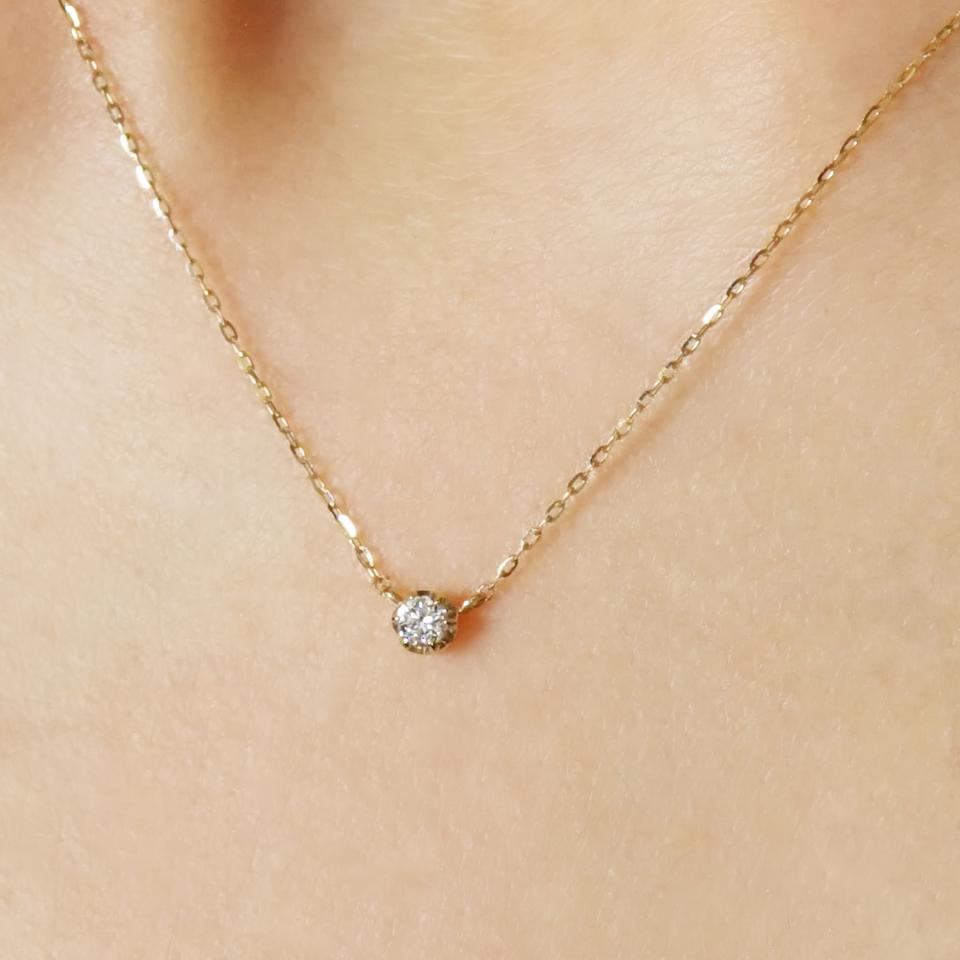 6本の爪で繊細にセッティングしたソリテアネックレス。