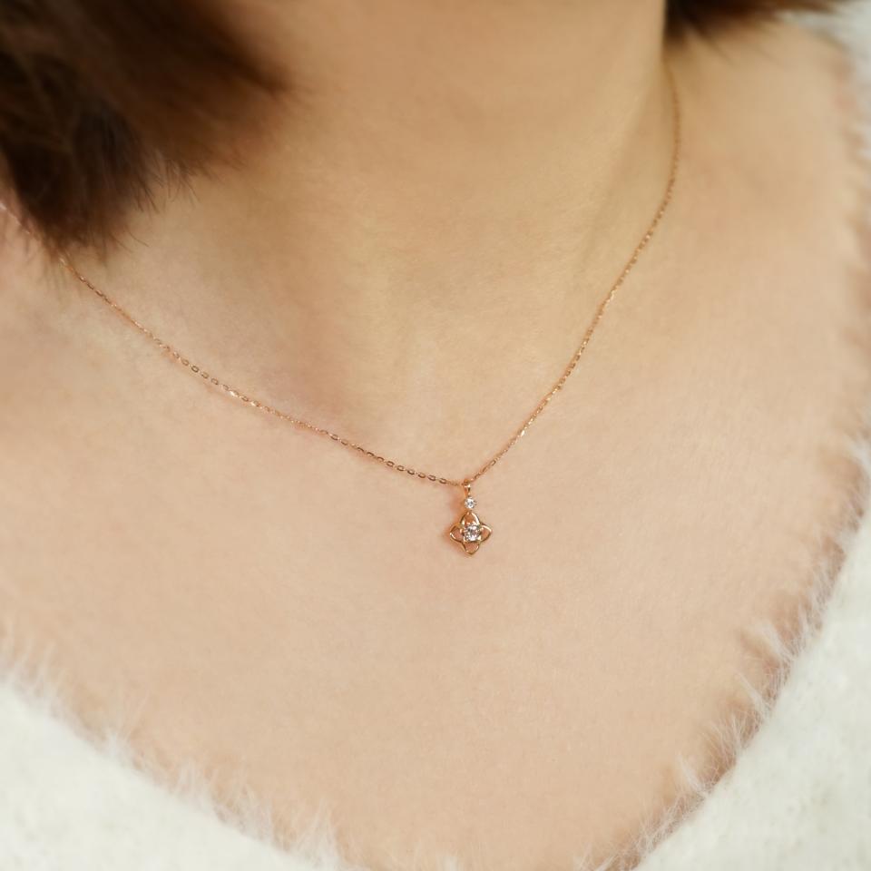 K10ピンクゴールド、ダイヤモンド0.02ct、ホワイトトパーズ