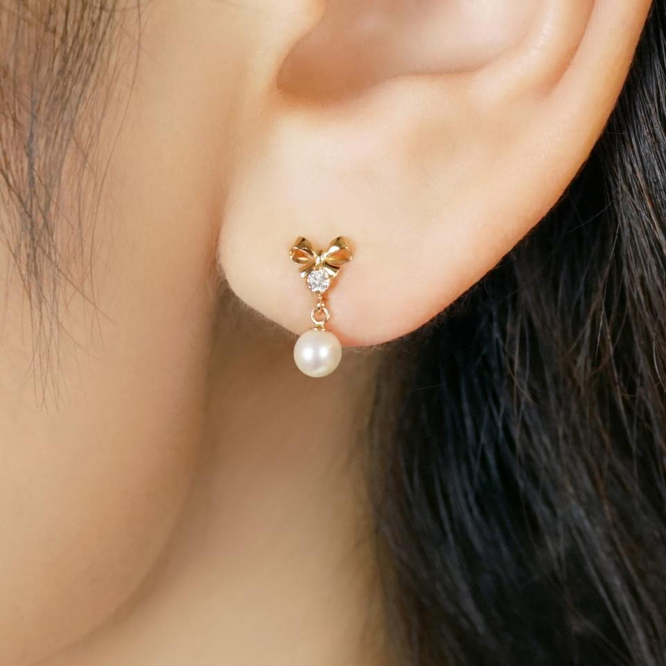 リボンとキュービックジルコニアを合わせたシルエットがハートのようにも見え、ロマンチックなムードを添えています。